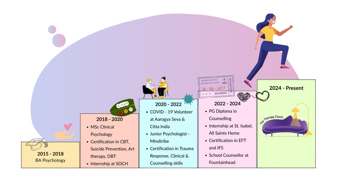 Hi, I’m Muskan Tahalramani, a counseling psychologist with over 4 years of experience. At my private practice, The Therapy Couch, I work with teenagers and adults navigating emotional and psychological challenges with warmth and care. I believe healing isn’t about fixing what’s broken, but about reconnecting with the parts of ourselves we’ve lost touch with. My approach is grounded in empathy, self-awareness, and the belief that therapy should meet you exactly where you are.